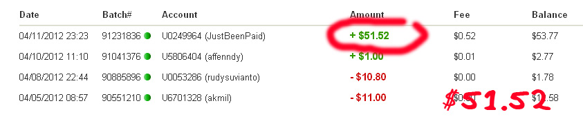 Berikut adalah bukti-bukti pembayaran yang saya terima dari Justbeenpaid.